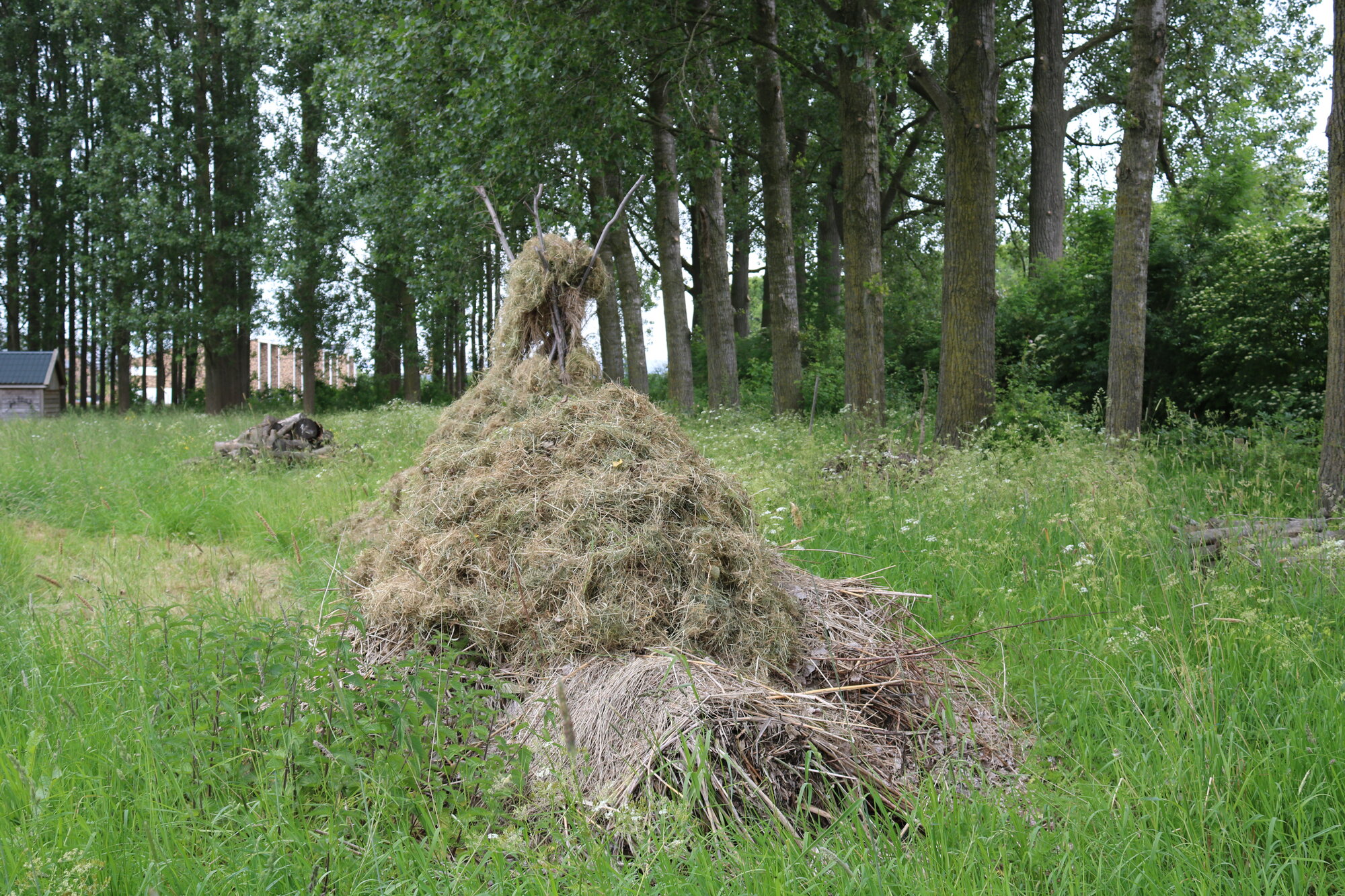 Het maaisel wordt verzameld en gebruikt om muizenruiters te maken. Dit is een hoop van snoeihout en laagjes maaisel waarin muizen zich goed kunnen verbergen en nestelen. De muizenruiters zijn daarom ideaal voor het aantrekken van verschillende uilensoorten, marters, wezels en hermelijnen. Voor de marters en hermelijnen zijn houtstapels met daarin kasten gemaakt die beschutting en nestgelegenheid bieden. De steenmarter heeft zelfs een eigen houten huisje in het gebied gekregen. Daar maakt hij goed gebruik van want de prooiresten liggen er zelfs nog! Ook aan de ringslang is gedacht door broeihopen te creëren. Deze bestaan uit bladhopen en compost waarin takken zijn verwerkt. De ringslang gebruikt deze hopen om eitjes in te leggen. Het bieden van schuil- en nestgelegenheid heeft ervoor gezorgd dat deze dieren regelmatig in het gebied zijn gespot op de wildcamera's.
