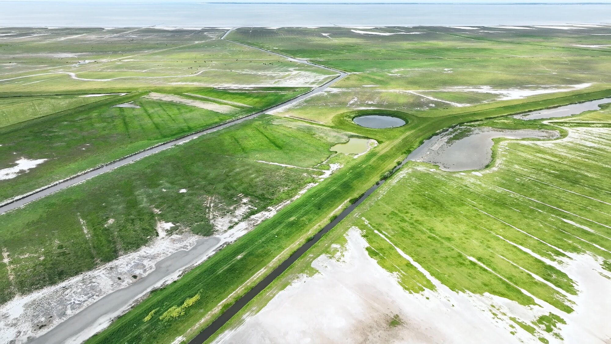 Vogelperspectief van buitendijks plasdras gebied in de provincie Fryslân, gevormd door het vasthouden van regenwater